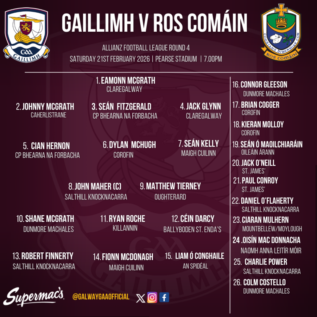 The Galway Senior Football team to face Roscommon in Round 4 of the Football League is announced: