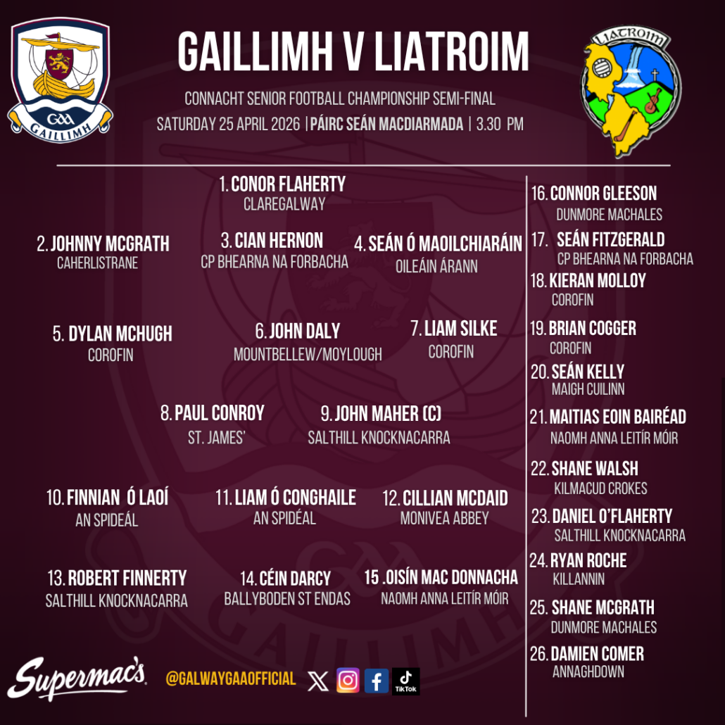Team News: Galway Team v Leitrim, Connacht SFC Semi-Final