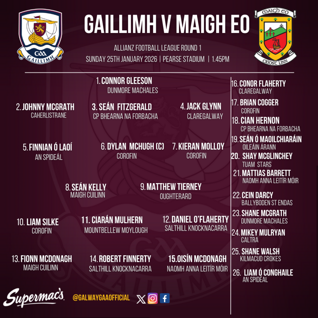 The Galway Senior Football team to face Mayo in Round 1 of the Allianz Football League is announced: