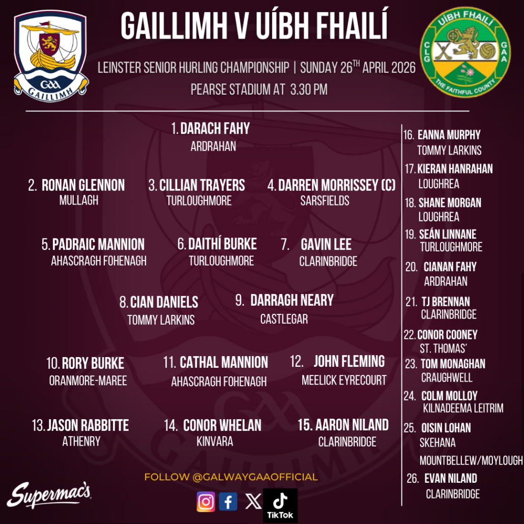 The Galway Senior Hurling team to face Offaly in Round 2 of the Leinster SHC is announced!