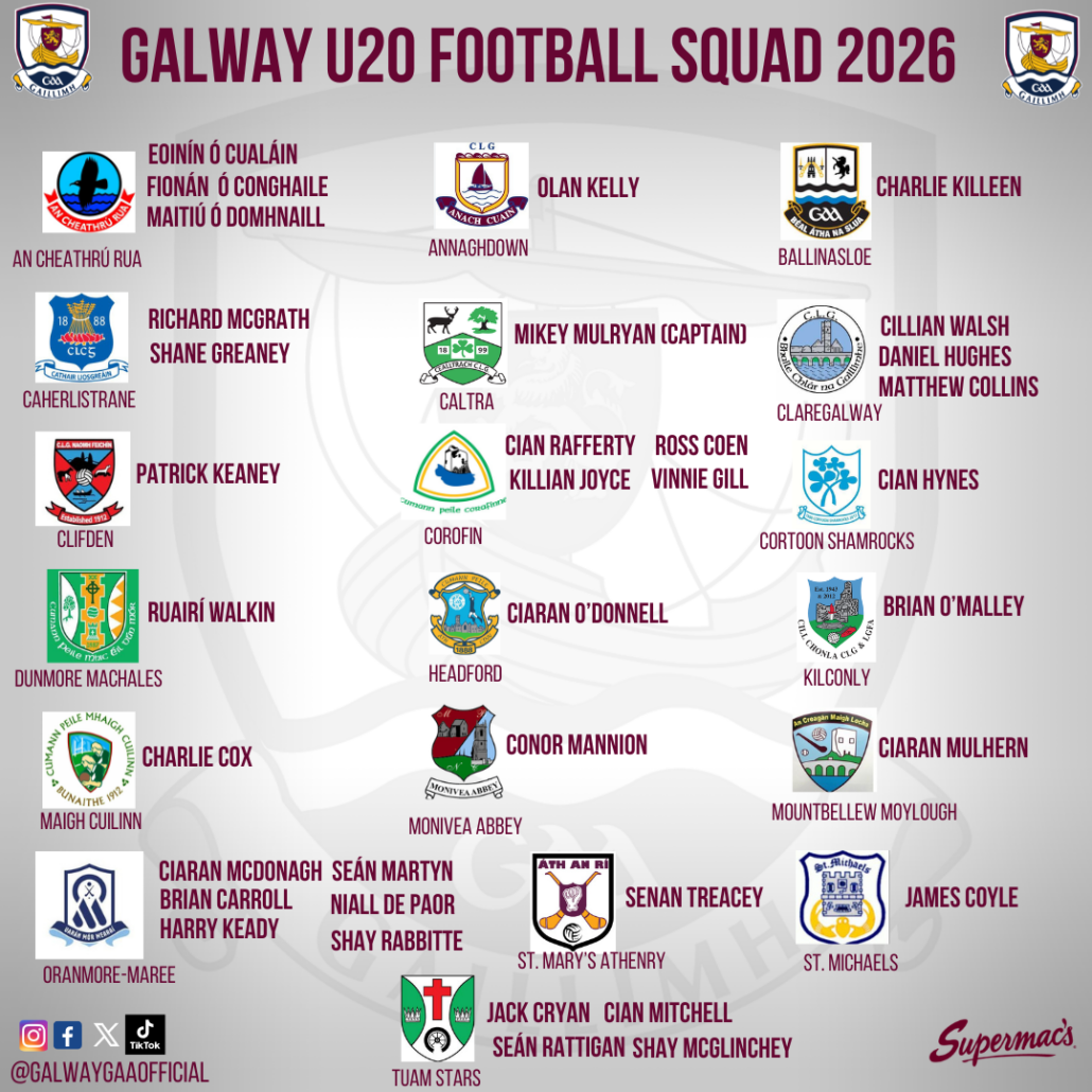 Team Manager, Kevin Johnson and his Management team have named their squad for the upcoming U20 Connacht Football Championship.